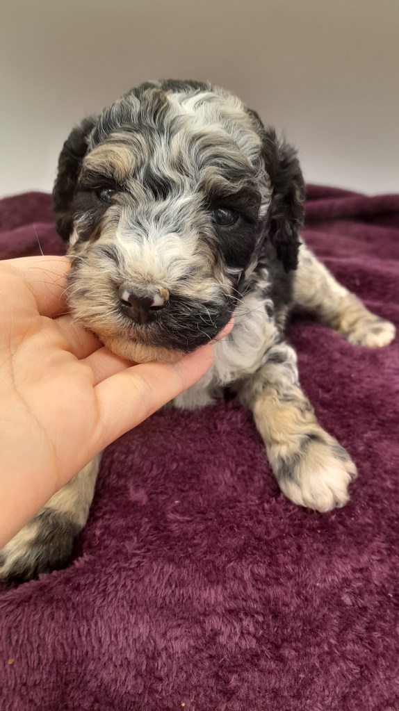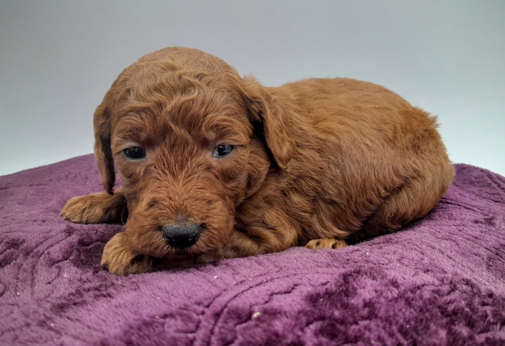 Our beautiful moyen size poodles will be around 20-35 pounds at maturity and 17-20 high. We also have one standard girl who weighs 60 pounds her babies will be in 40-60 range. All Parents have been gentic health tested and clear and are akc registered. Puppies will come with a 12 month genetic health guarantee. We take great pride in breeding only the best in beauty, brains and temperament.